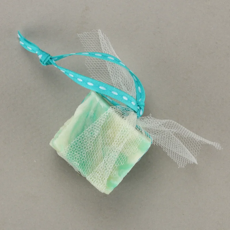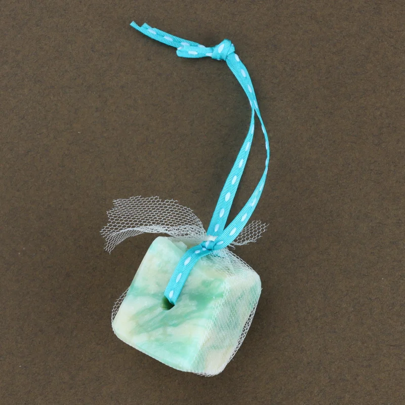 Mini scented soaps, handmade, with a string to hang in your space. The string helps to air and drain the soap and preserve it for a longer period of time. See our mini scented soaps in small cubes with a string, to hang in the car, in the closet, in the kitchen, in the bathroom.