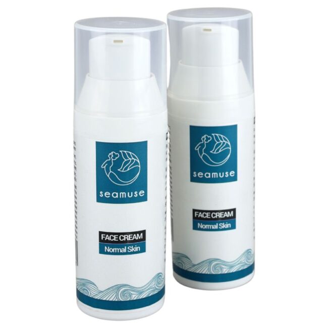 An herbal face cream for normal skin with grape seed oil, avocado oil, castor oil, cocoa butter, glycerin, and vitamin E.
