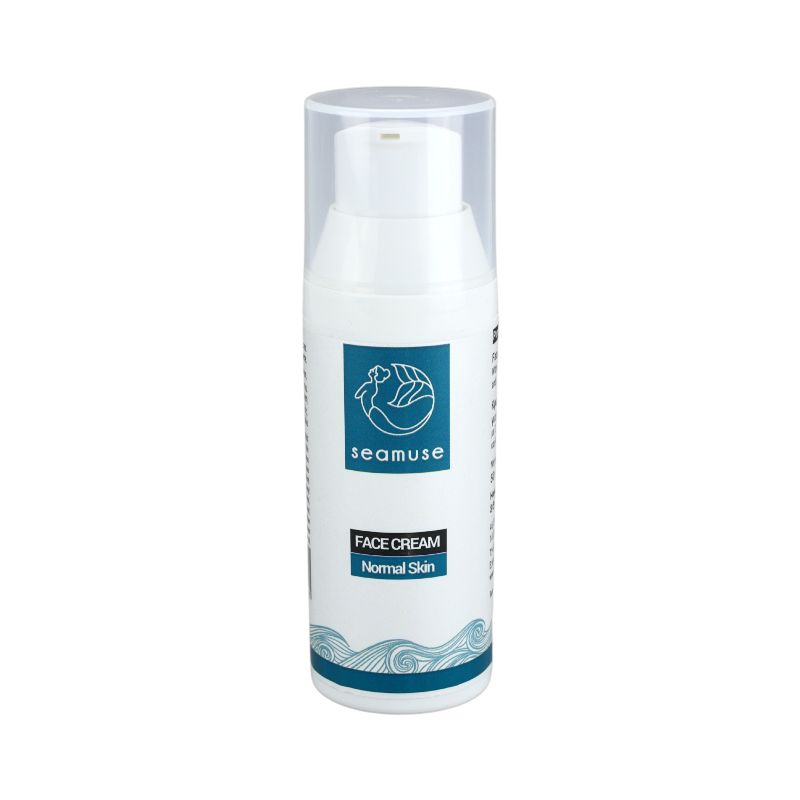 An herbal face cream for normal skin with grape seed oil, avocado oil, castor oil, cocoa butter, glycerin, and vitamin E.