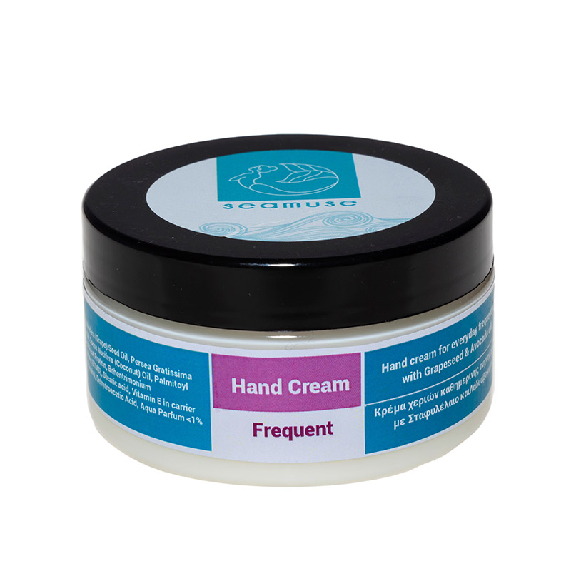 Η κρέμα χεριών συχνής χρήσης με σταφυλέλαιο και αβοκάντο της Seamuse προσφέρει θρέψη και προστασία ενώ ταυτόχρονα απορροφάται πολύ εύκολα χωρίς να αφήνει λιπαρό υπόλειμμα στα χέρια. Έχει λεπτή υφή ενυδατικής λοσιόν και είναι πολύ αποτελεσματική για συχνή χρήση μετά τα αντισηπτικά και τις συχνές πλύσεις με σαπούνι.