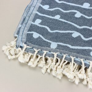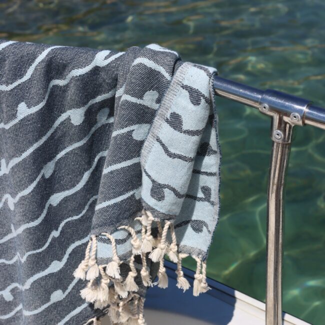 Μία μοναδική πετσέτα θαλάσσης & σώματος για το μπάνιο σας στο σπίτι, αλλά και για την παραλία το καλοκαίρι! Έχει ύφανση από εξαιρετικής ποιότητας αιγυπτιακό βαμβάκι και μοναδικό χρωματικό συνδυασμό. Πολύ απαλή αίσθηση λόγω του ποιοτικού νήματος. Έχει περάσει τη διαδικασία πρόπλυσης ώστε να μην συρρικνωθεί στο πλύσιμο.
