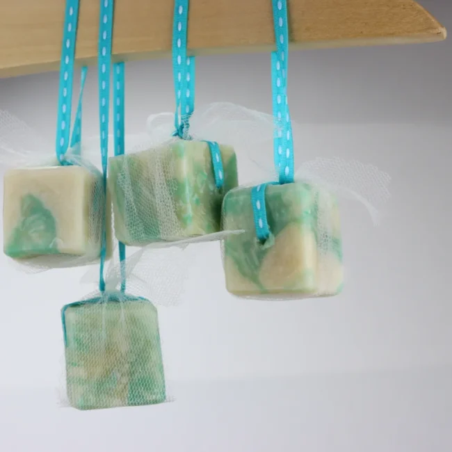 Μίνι αρωματικά σαπουνάκια, χειροποίητα, ψυχρής μεθόδου με κορδονάκι για να κρεμάσετε στο χώρο σας. Το κορδονάκι βοηθάει στον αερισμό και το στράγγισμα του σαπουνιού και στην διατήρηση του για μεγαλύτερο χρονικό διάστημα. Δείτε τα μίνι αρωματικά σαπουνάκια μας σε μικρά κυβάκια με κορδονάκι, για να κρεμάσετε στο αυτοκίνητο, στην ντουλάπα, στην κουζίνα, στο μπάνιο. Απολαύστε τα χαρούμενα, χρωματιστά σαπουνάκια που αναδίδουν μοναδικό λουλουδένιο άρωμα και σας φτιάχνουν τη διάθεση. Όπου τα ακουμπήσετε θα αρωματίζουν ελαφρά το χώρο.