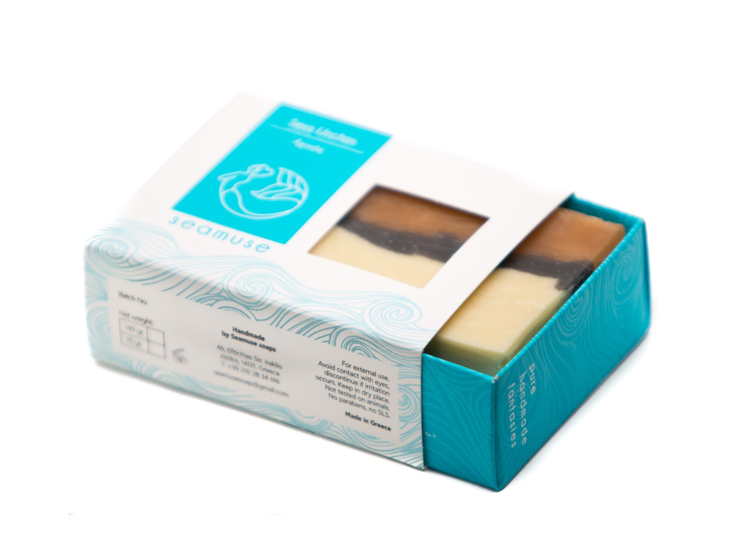 Χειροποίητο σαπούνι με θαλασσινό άρωμα για την καθημερινή περιποίηση, με ελαφρύ οζονικό άρωμα που θυμίζει θαλασσινή αύρα. Χρωματική σύνθεση που φέρνει στη μνήμη καλοκαιρινές μέρες κάτω από τον ήλιο, με τον αχινό και το φύκι πάνω στο κύμα. Άρωμα unisex.